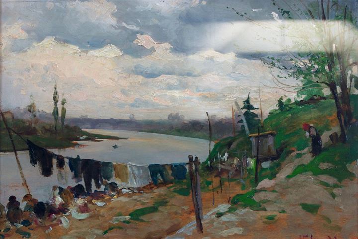PITTORE ANONIMO DEL XIX SECOLO "Lavandaie" 27x39 olio su tavoletta