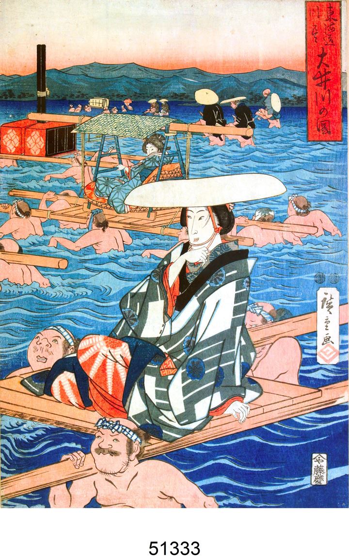 HIROSHIGE ANDO 1797-1858 "Processione nel fiume" 36x24,5 stampa su legno Già...