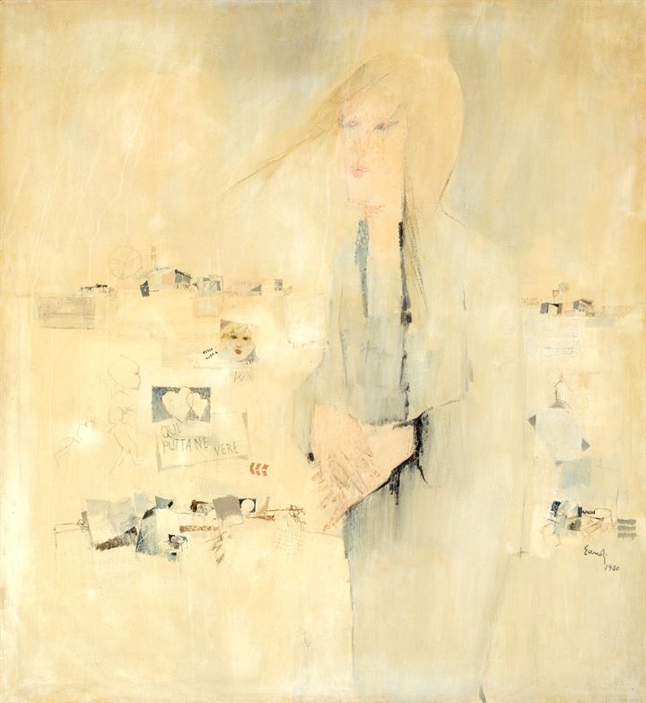 EANDI FERNANDO Torino 1926 "Storia napoletana" 1980 110x100 acrilico su tela...