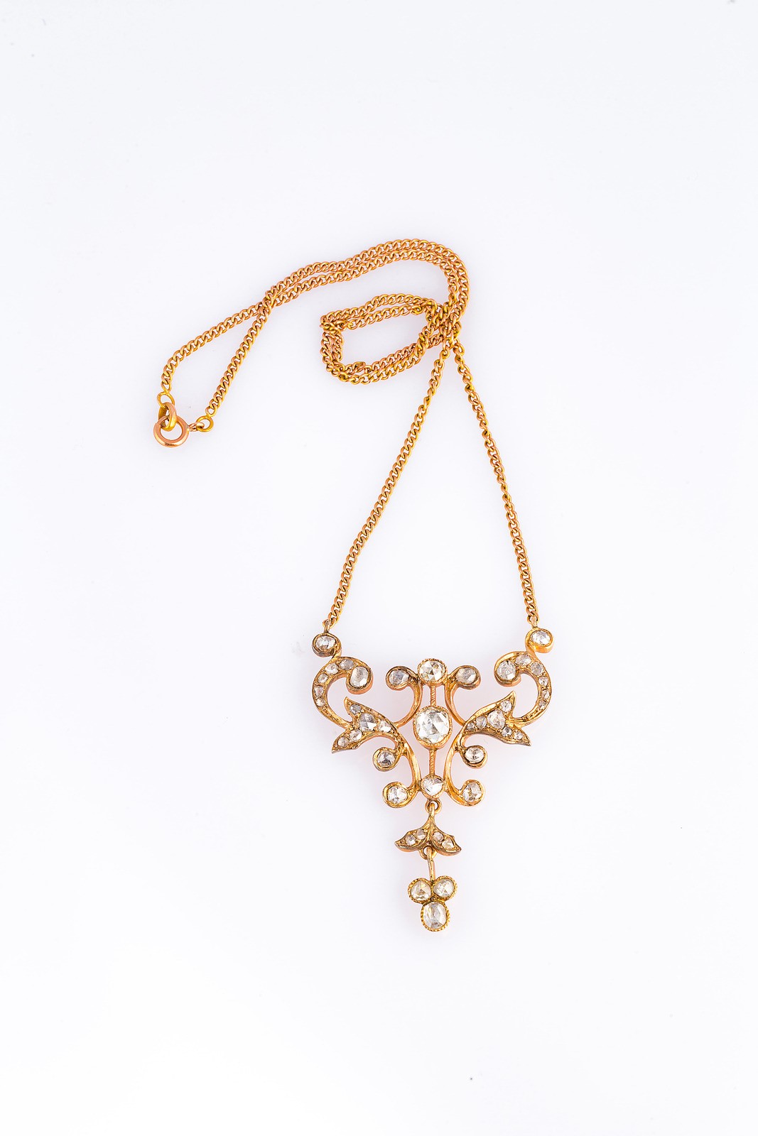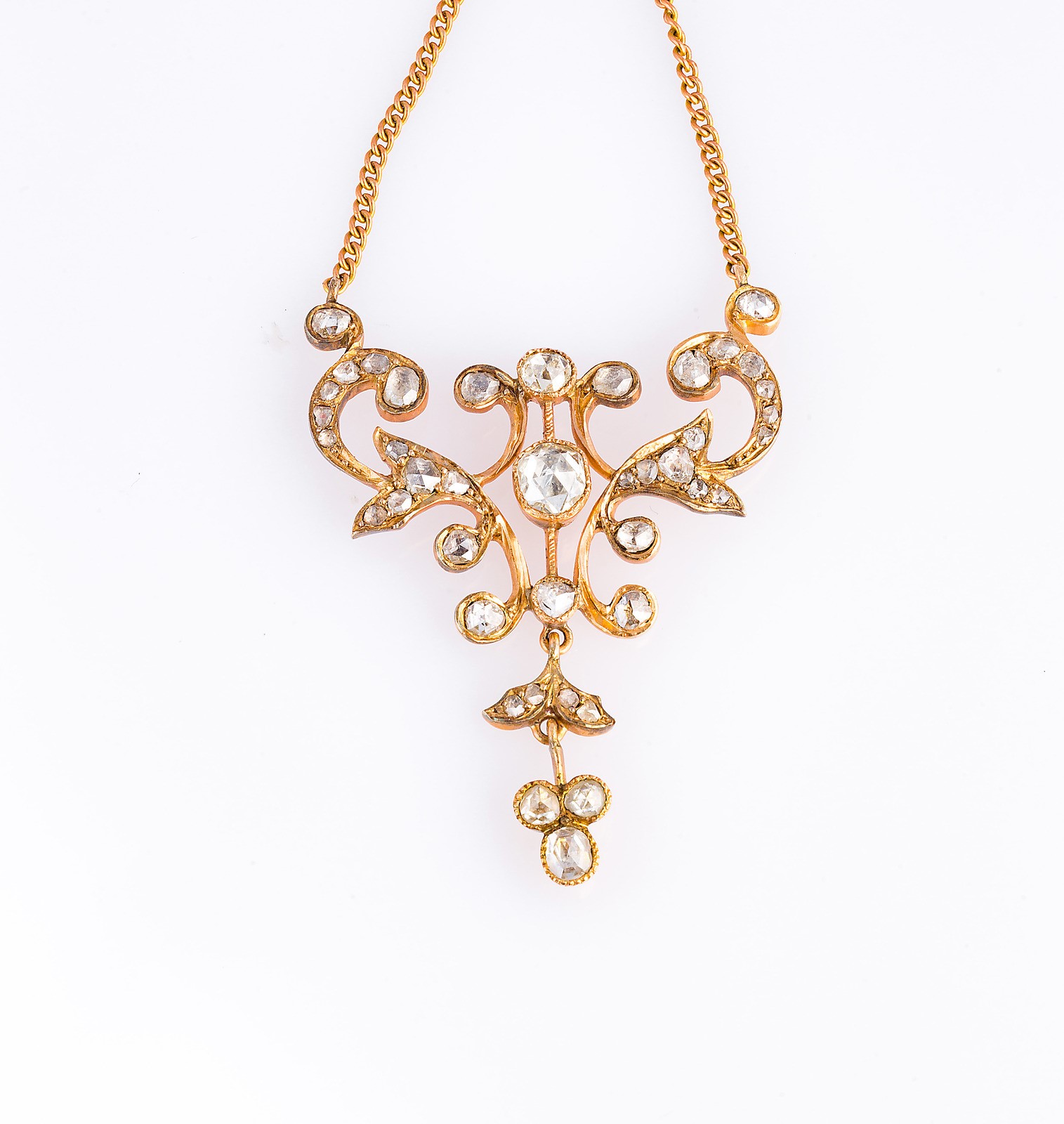 Collana in oro rosso con parte centrale in diamanti rose cut, gr 10.9, 1860...