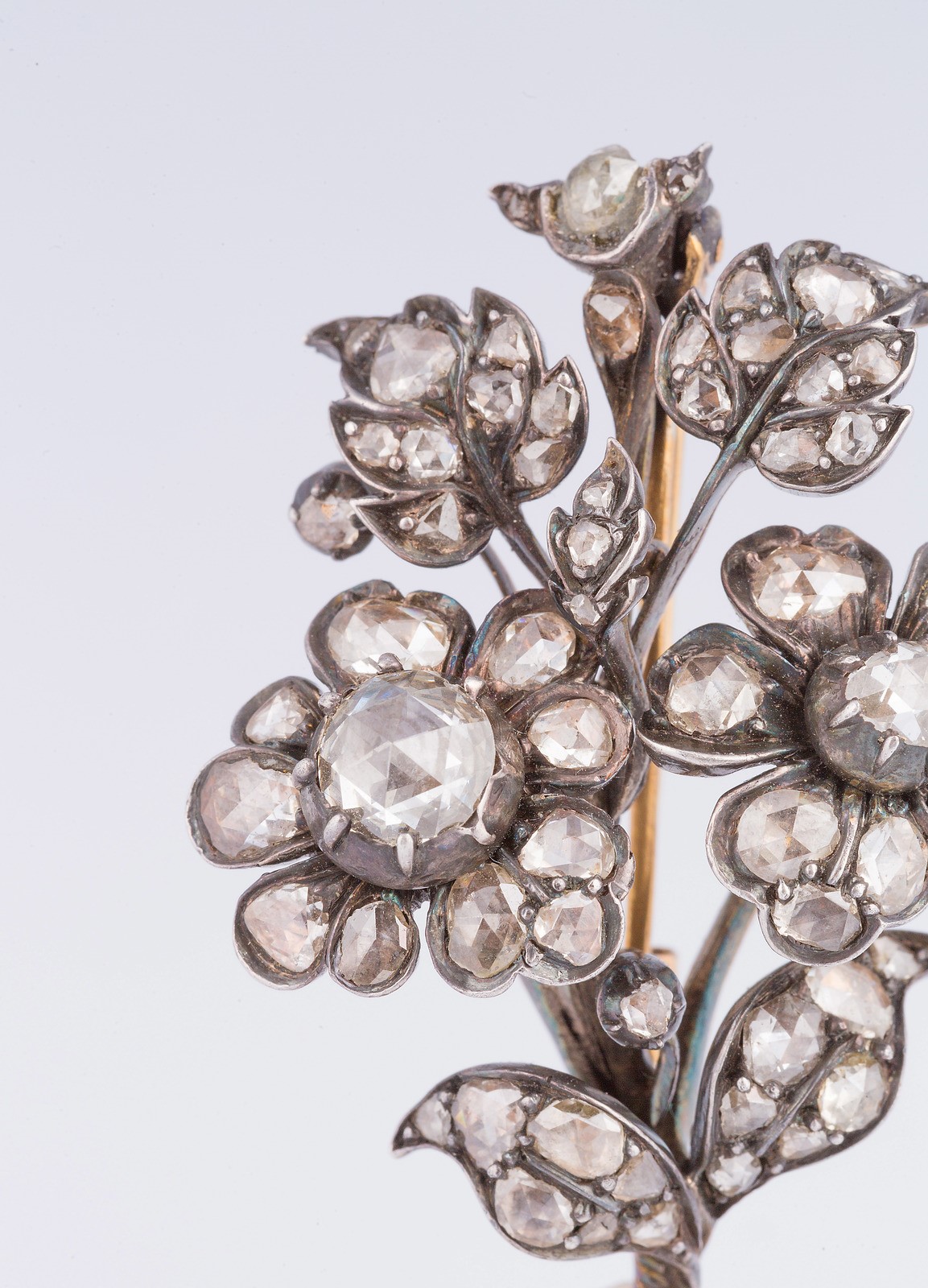 Spilla ottocentesca in argento e oro con diamanti taglio rosa cts 7 circa. ....