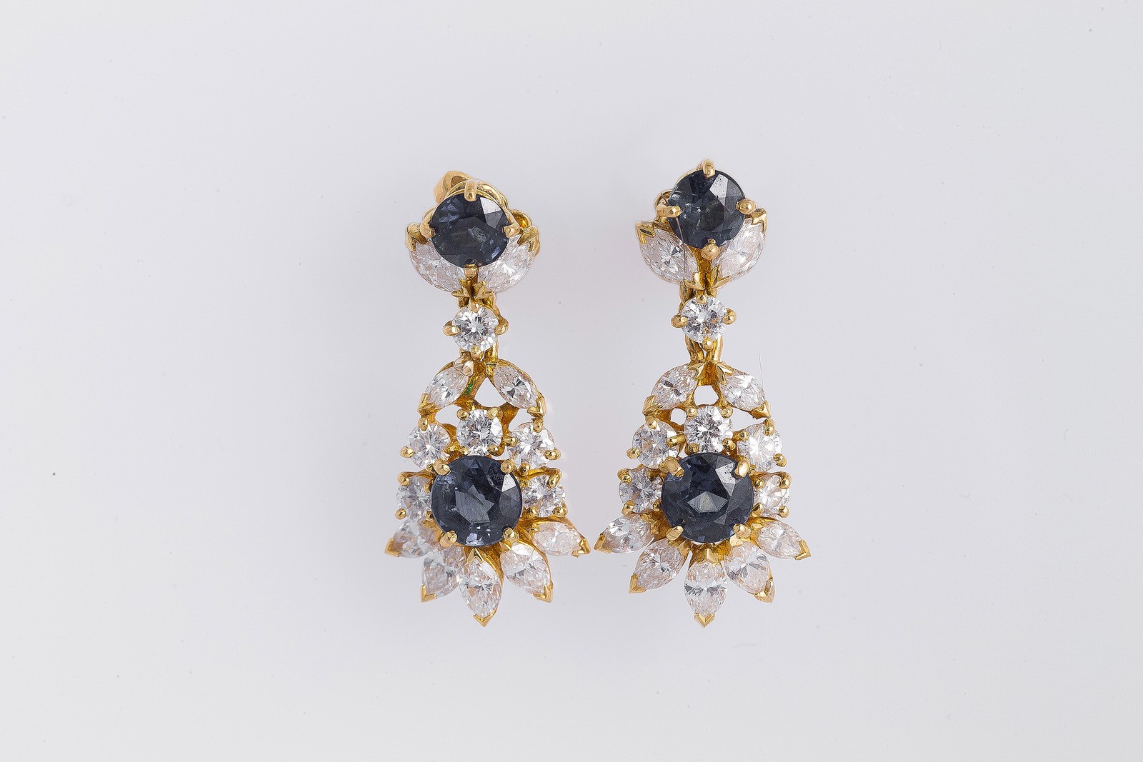 Orecchini con zaffiri tondi e diamanti. . .