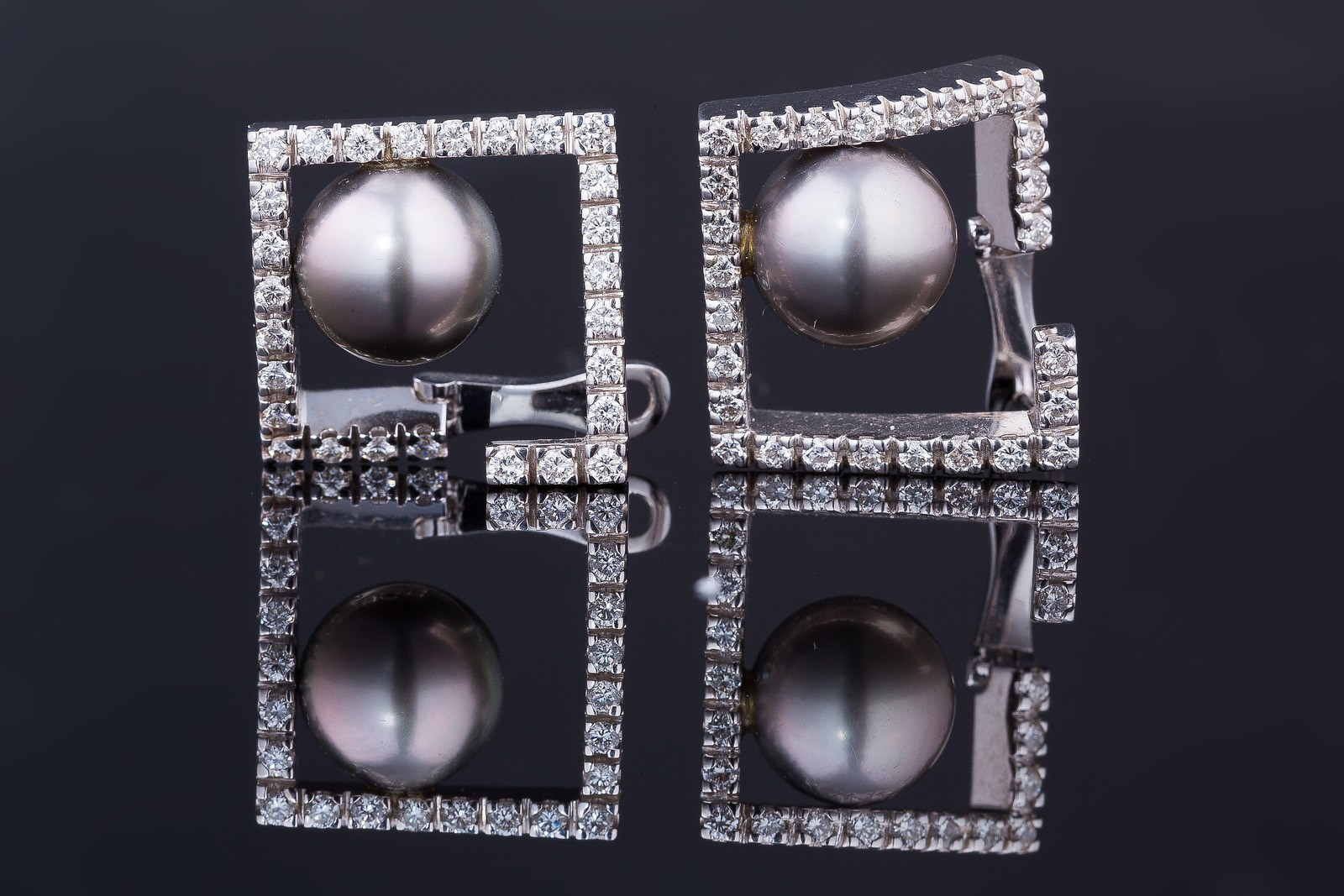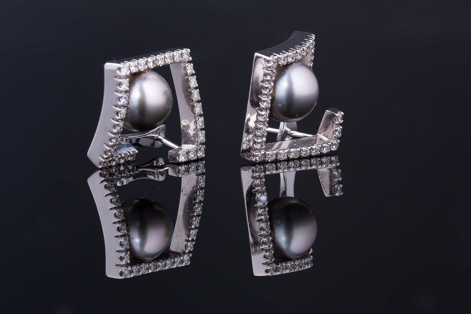 DAMIANI Orecchini in oro bianco con perle grigie e diamanti cts 1.10. . ....