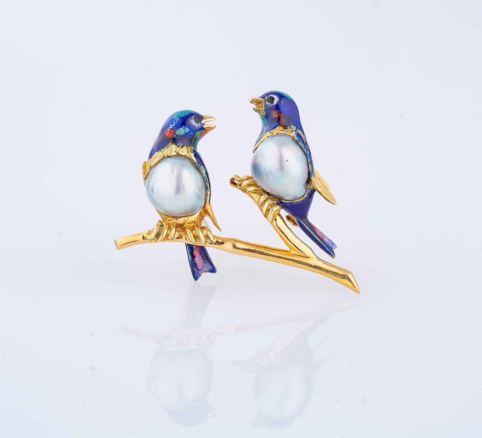 Spilla uccellini e perle e oro gr 11.80. . . [Nessun Autore] . . .