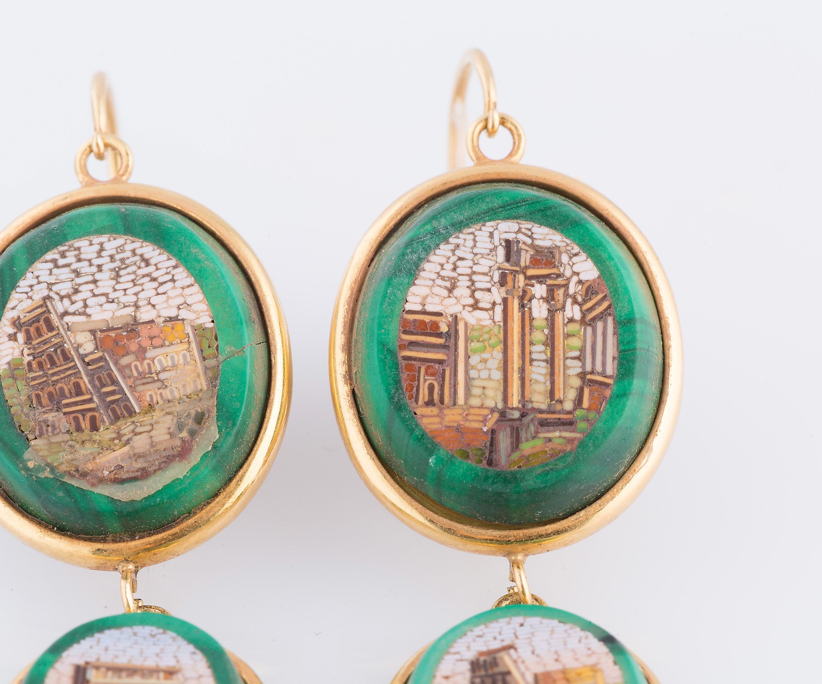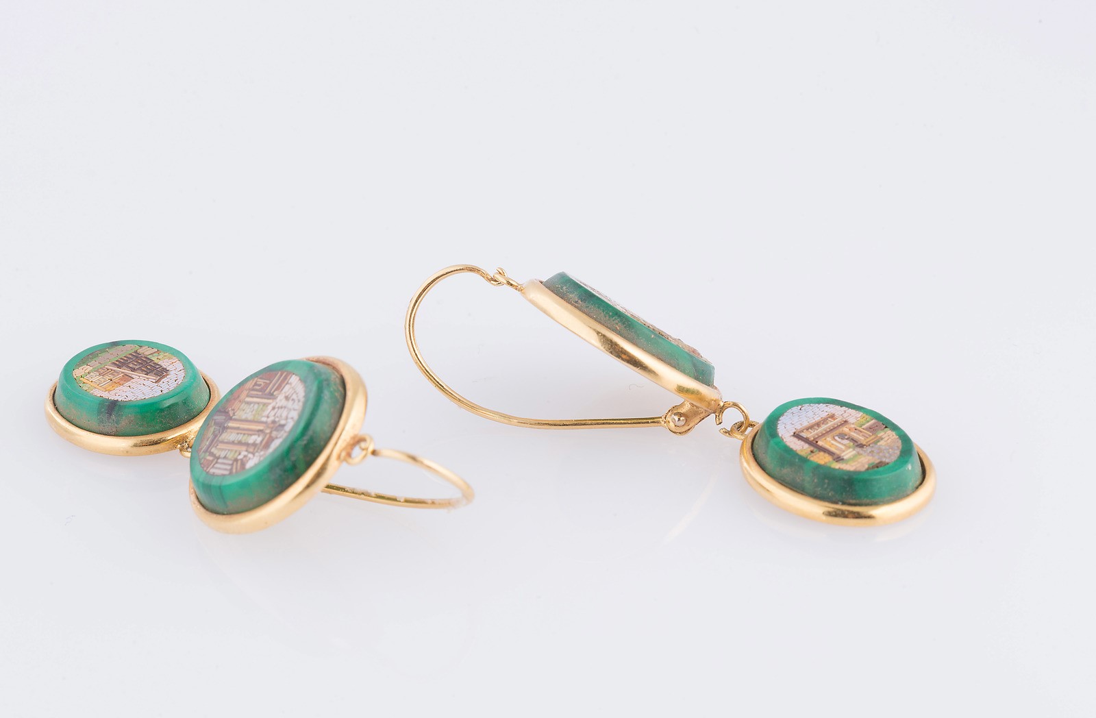 Orecchini in oro malachite e micromosaico gr 22. . . [Nessun Autore] . . .