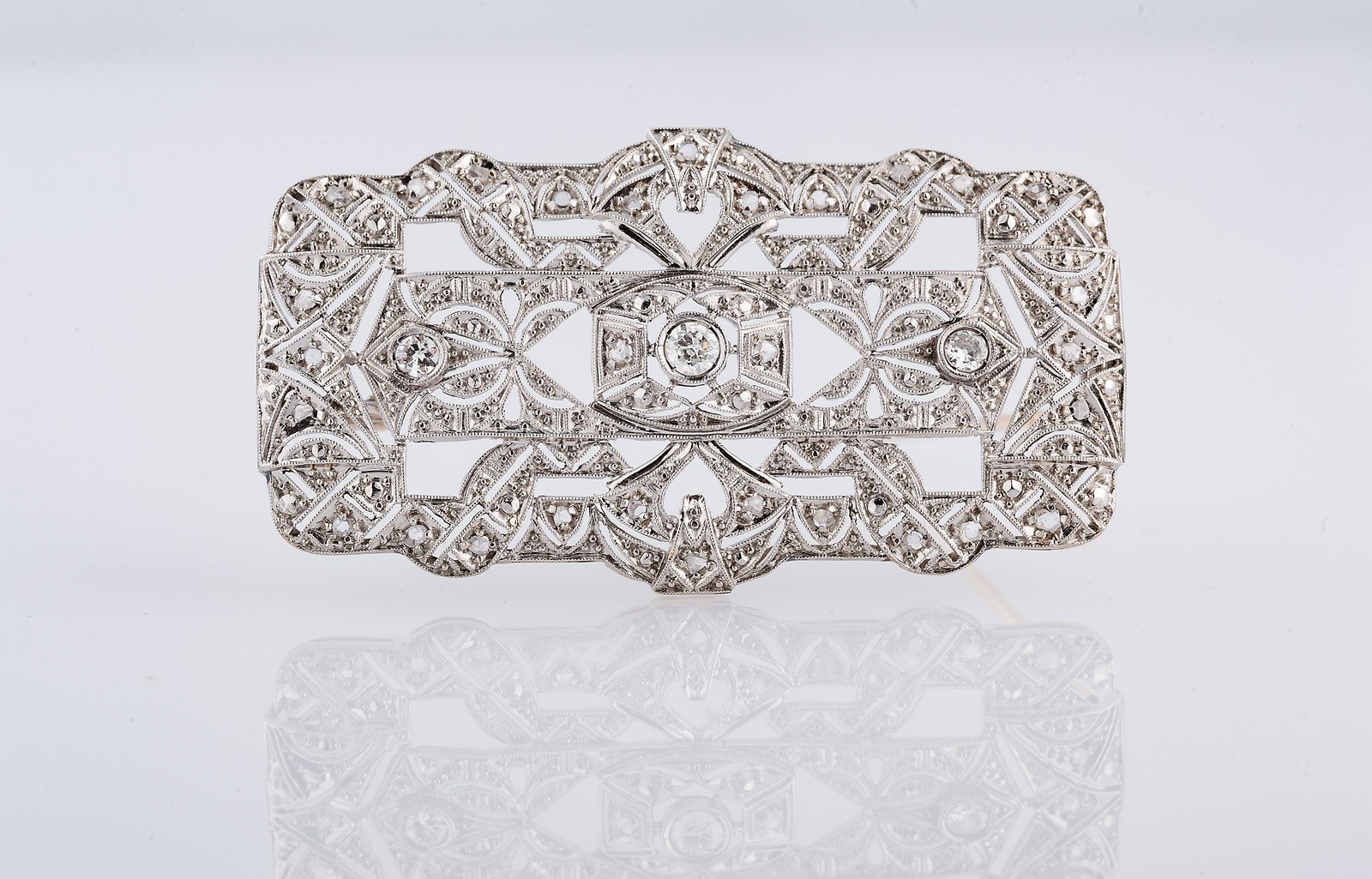 Spilla in oro bianco gr 12.20 e diamanti. . . [Nessun Autore] . . .