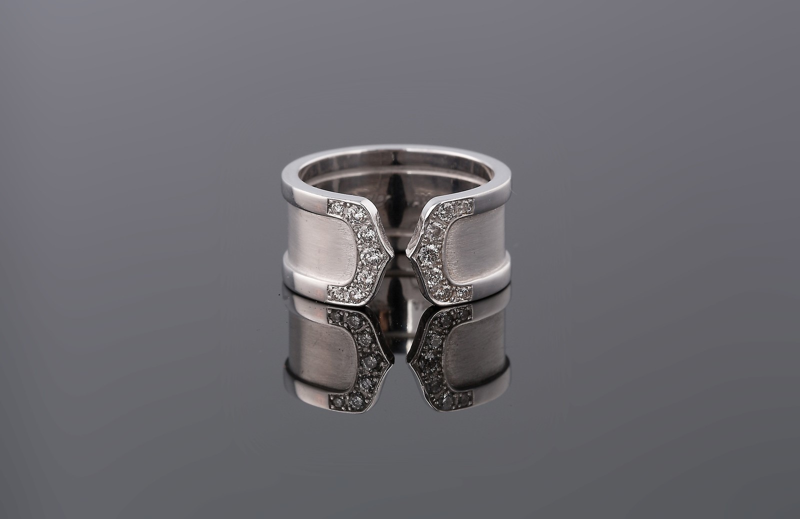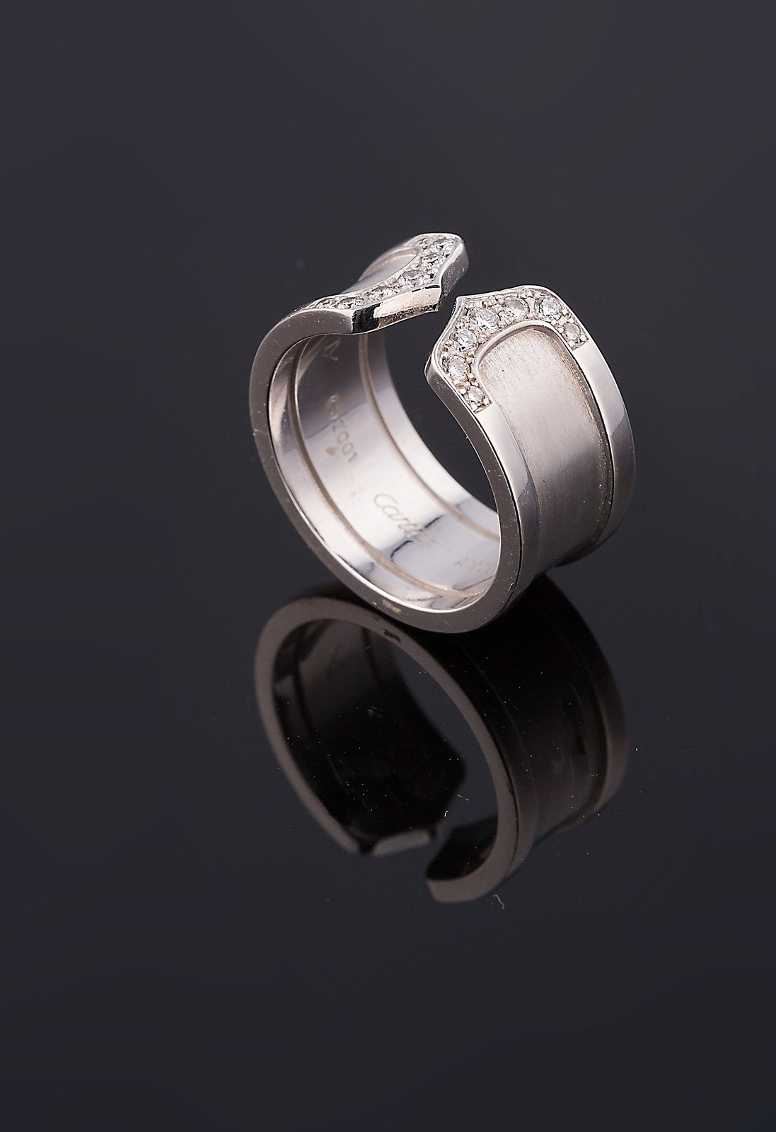CARTIER Anello in oro bianco gr 11.43, diamanti cts 0.23 circa. . .