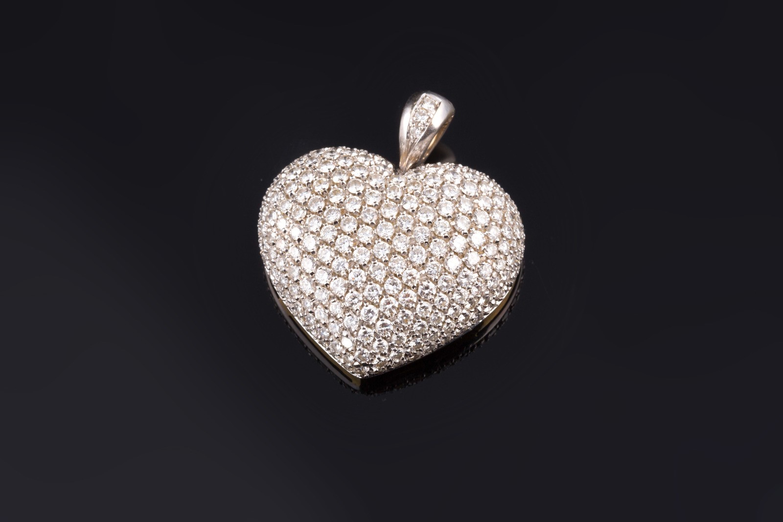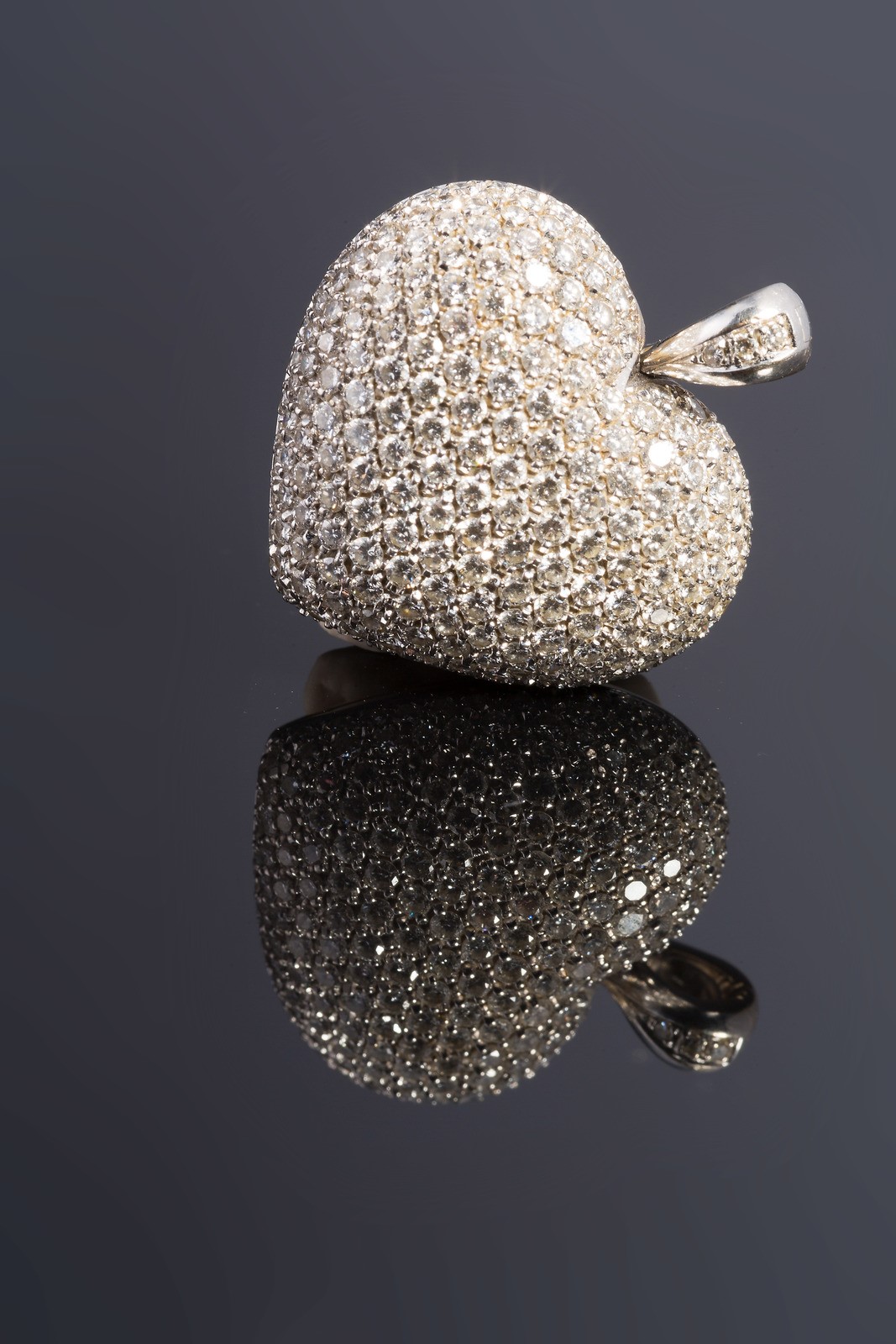 Lot 144 | Pendente a forma di cuore in oro bianco gr 11.88 e pavé di diamanti cts 3.33....