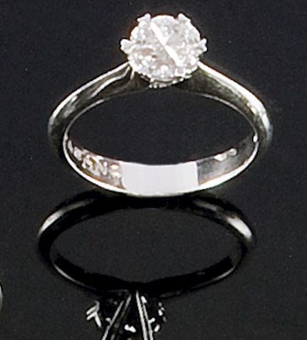 FASANO Anello in oro bianco, firmato "Fasano", composto da otto diamanti taglio a goccia per complessivi ct 0,45, uniti a suggerire l'idea di un'unica pietra, Peso gr 3,4 Misura 13