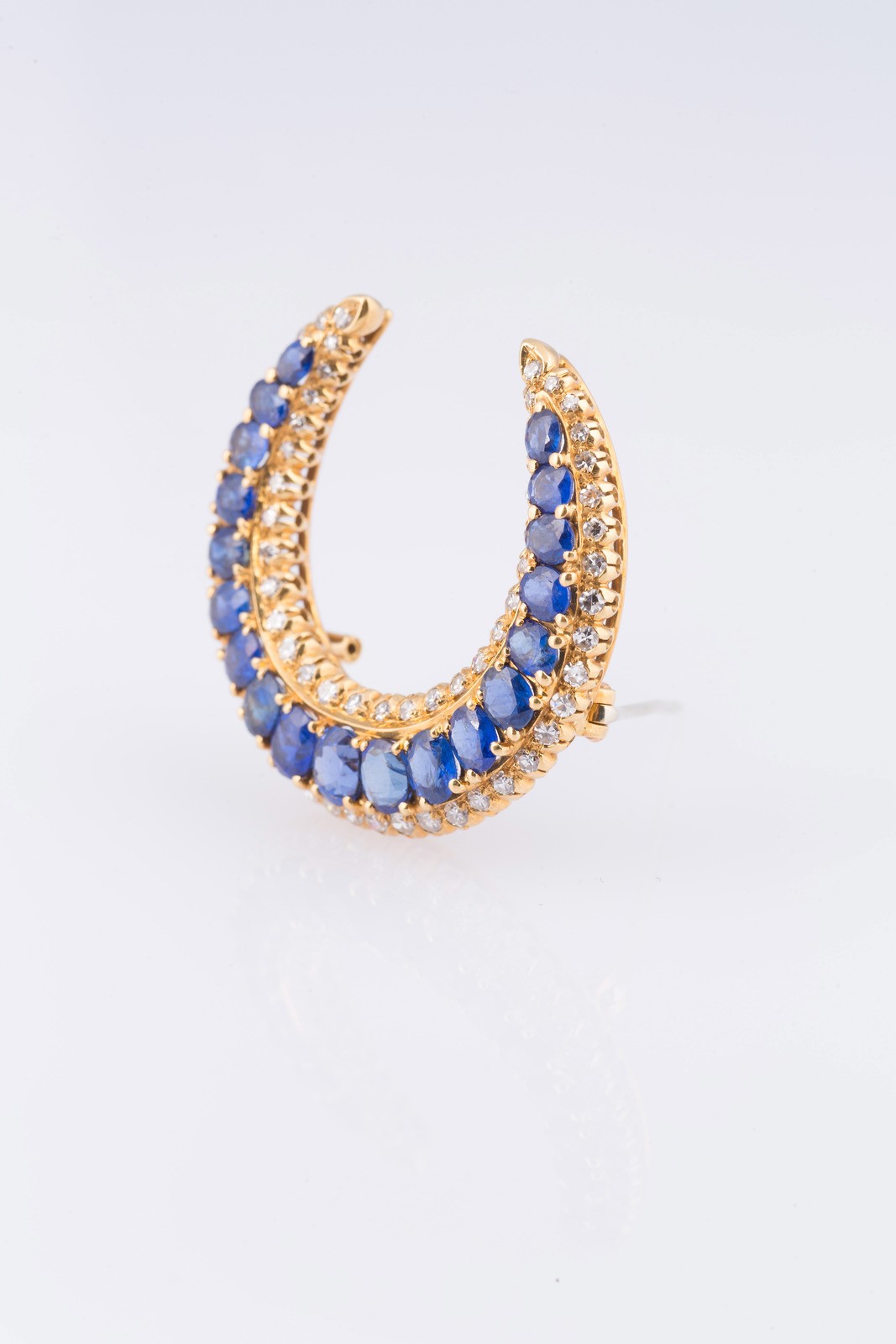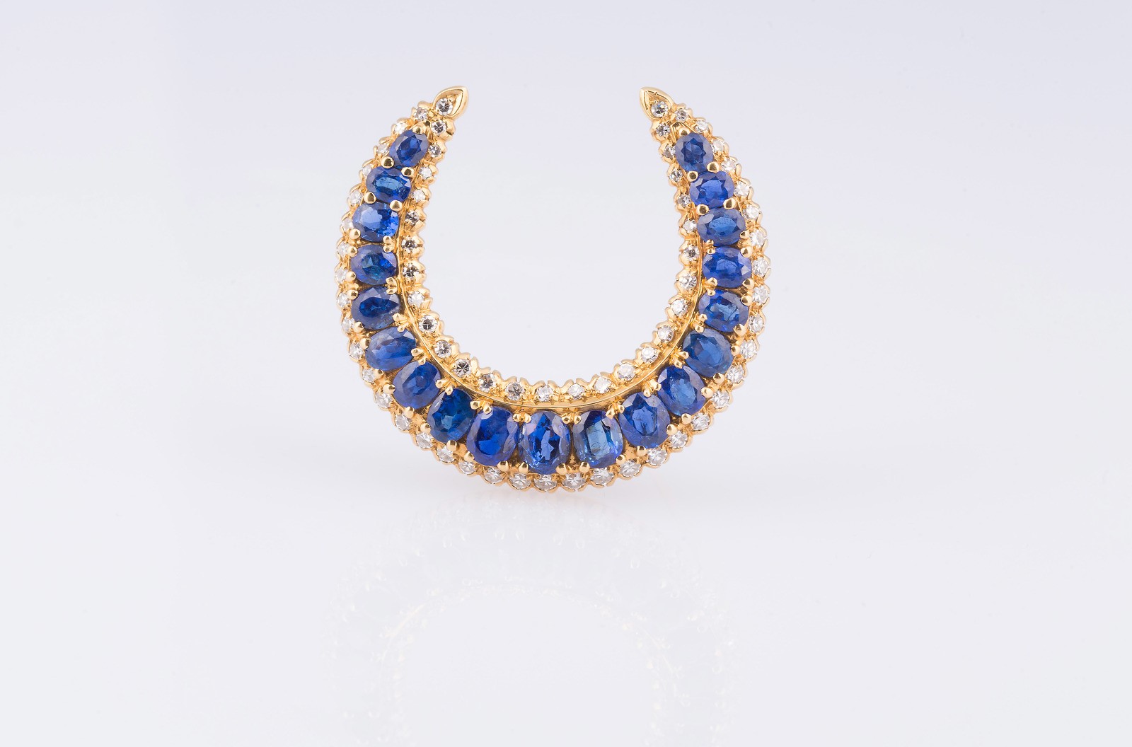 Spilla con brillanti per cts. 1,10 e zaffiri per cts. 6 circa. . . [Nessun...