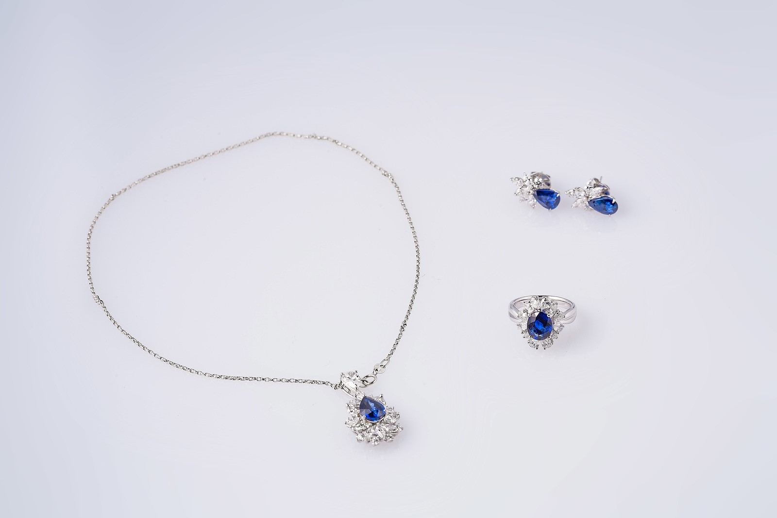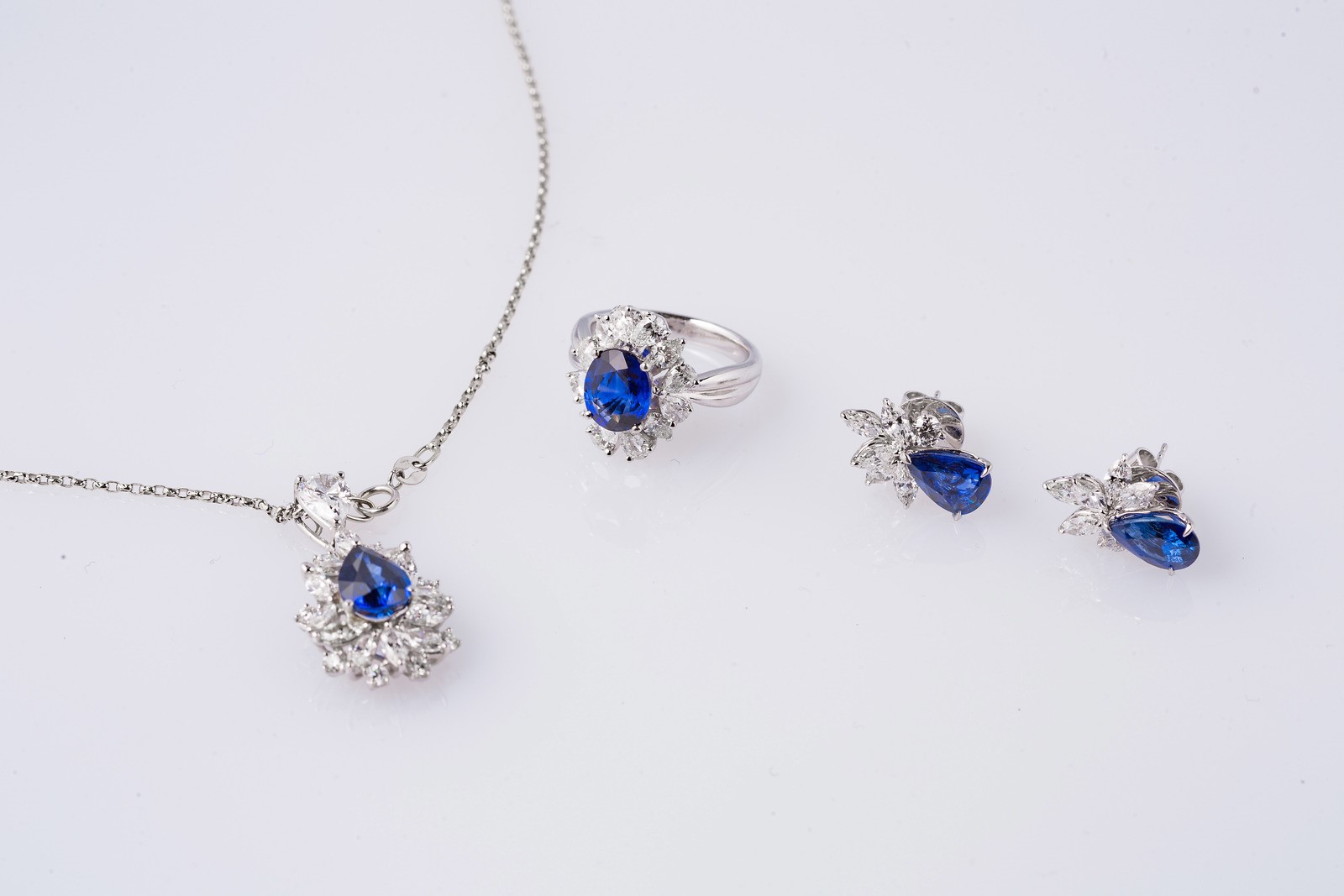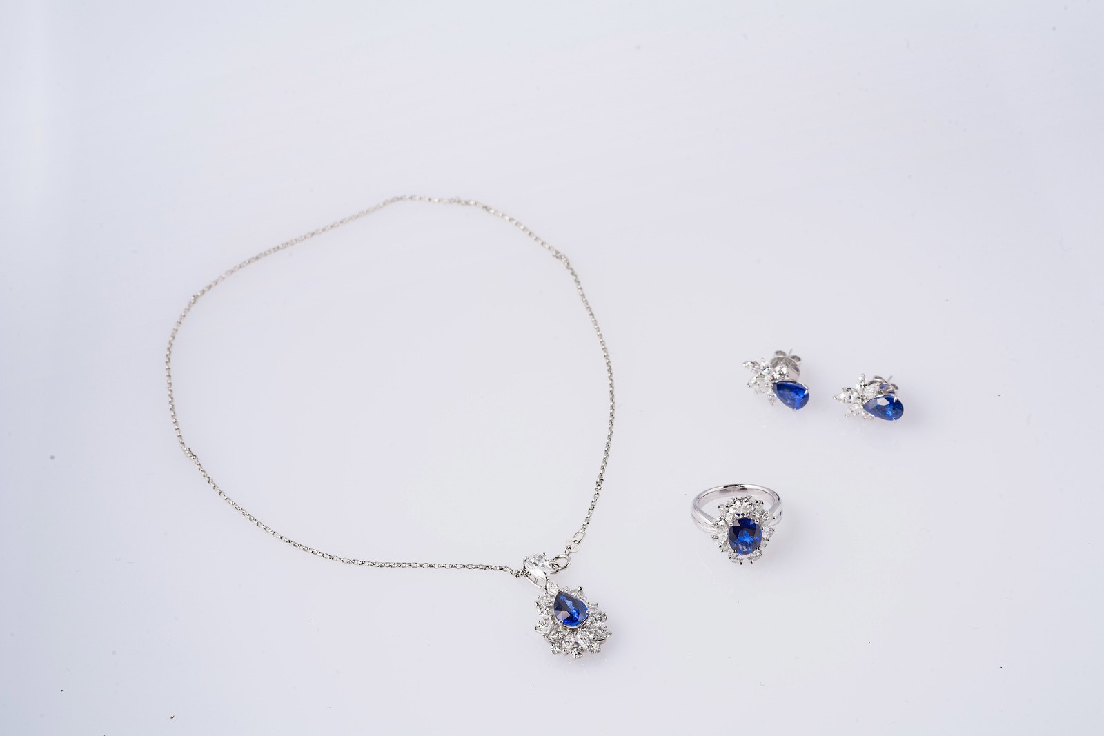 Parure composta da: un anello in platino gr 10.40, diamanti cts 1.50, zaffiro...