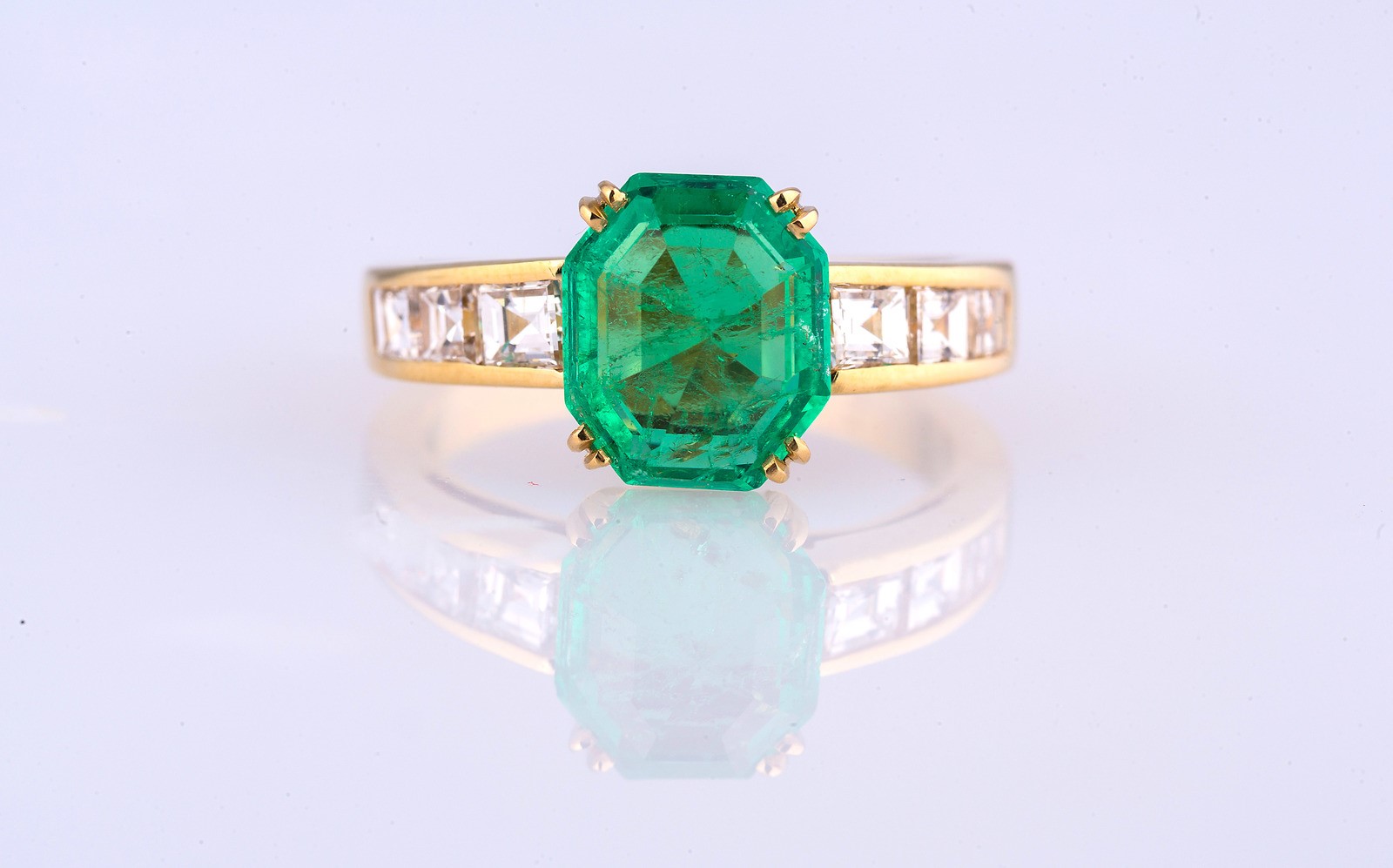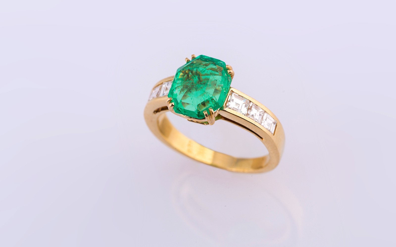 Lot 218 | Anello in oro 18 kt gr 3.7 smeraldo cts 2.17 e brillanti carrè cts 0.60. . ....