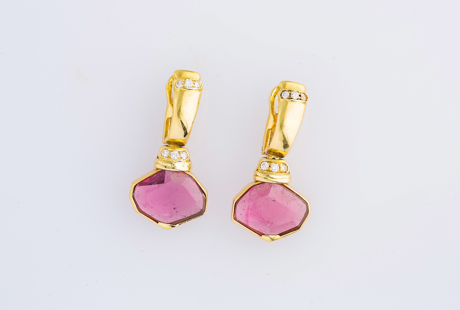 MISANI Orecchini in oro gr 18.30, tormaline e diamanti. . .