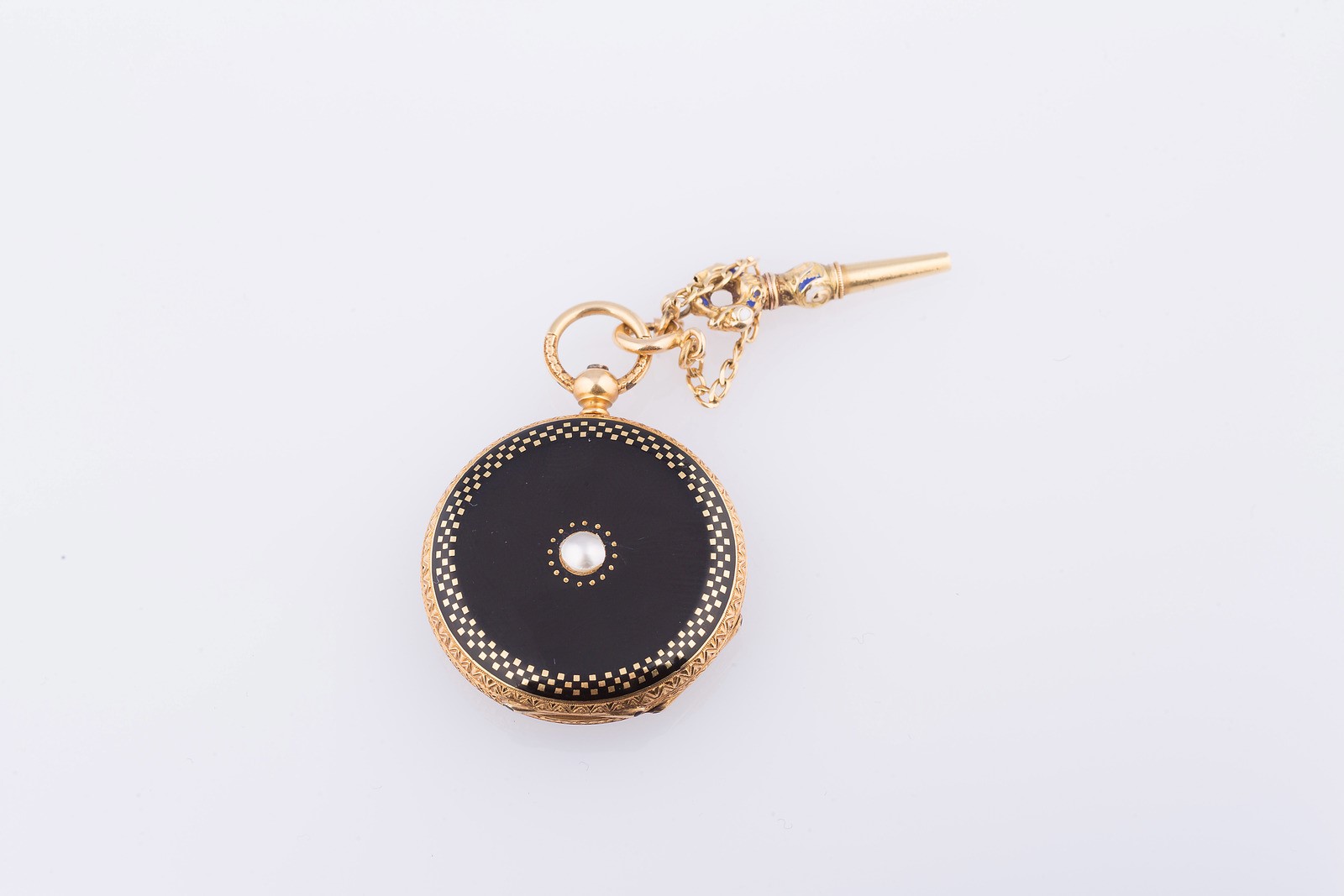 Orologio da tasca Vacheron and Costantin in oro giallo, fondello smaltato con perla centrale. . .