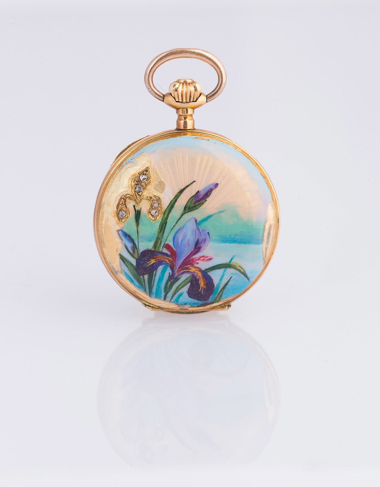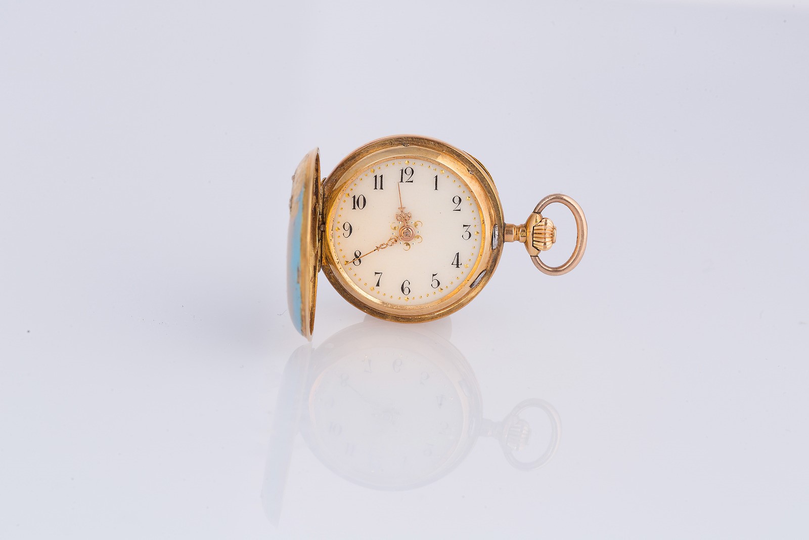 Orologio a ciondolo in oro smaltato. . . [Nessun Autore] . . .