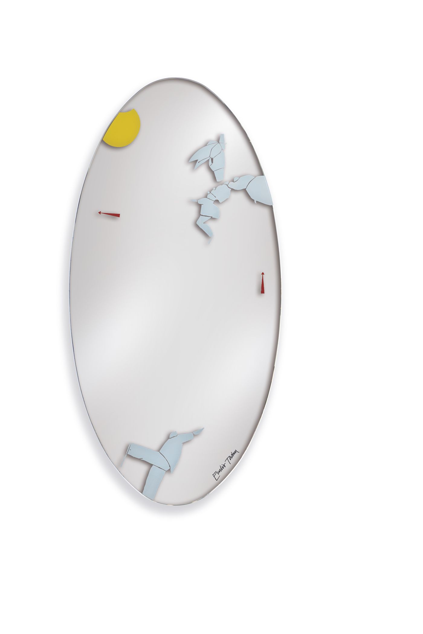 TADINI EMILIO - Specchio ovale serigrafato. Prod. Rimadesio 1987. cm 120x60. Informazioni su: Casa Vogue n° 188 Settembre 1987 pag. 348 e pubblicità redazionale.