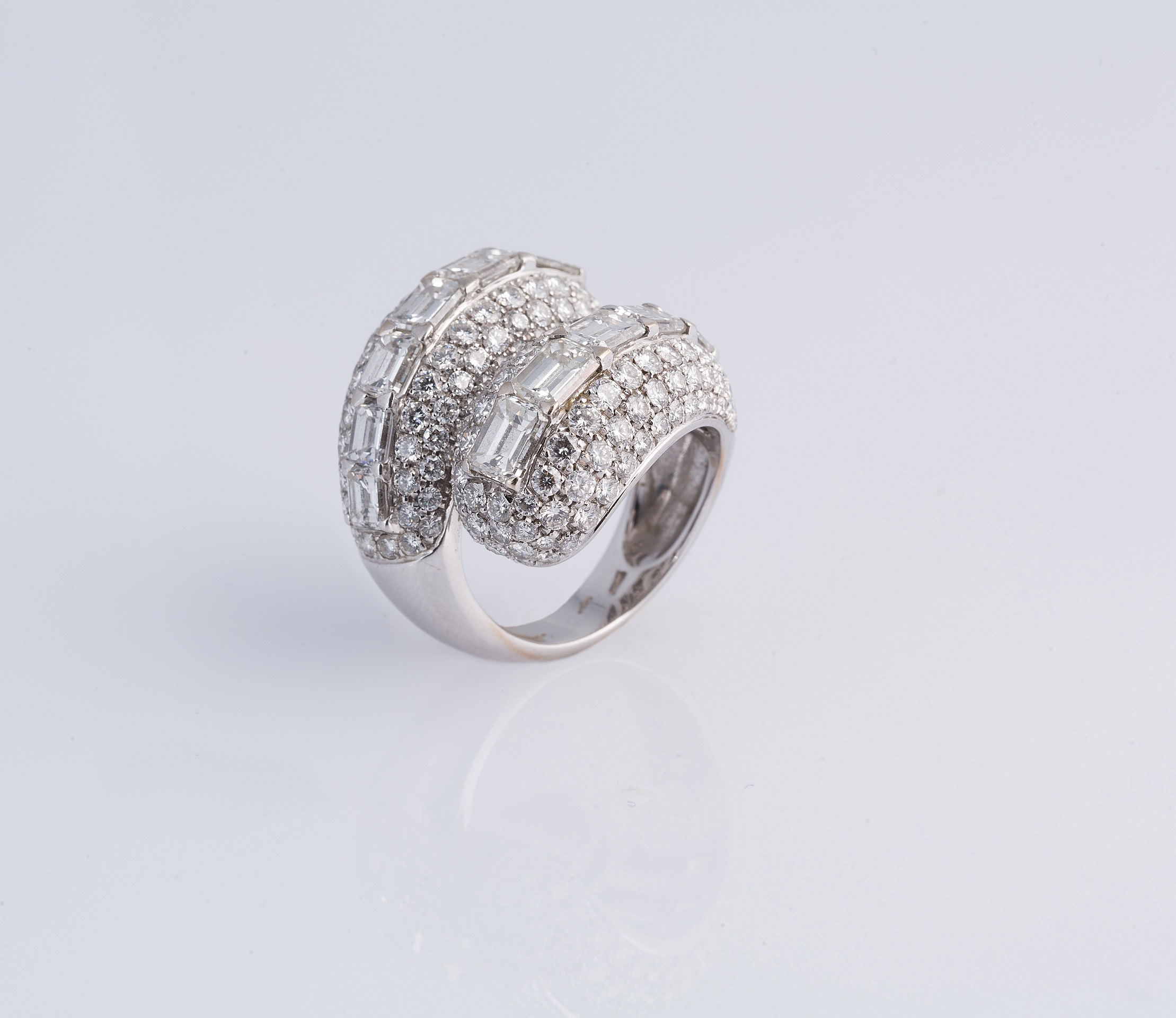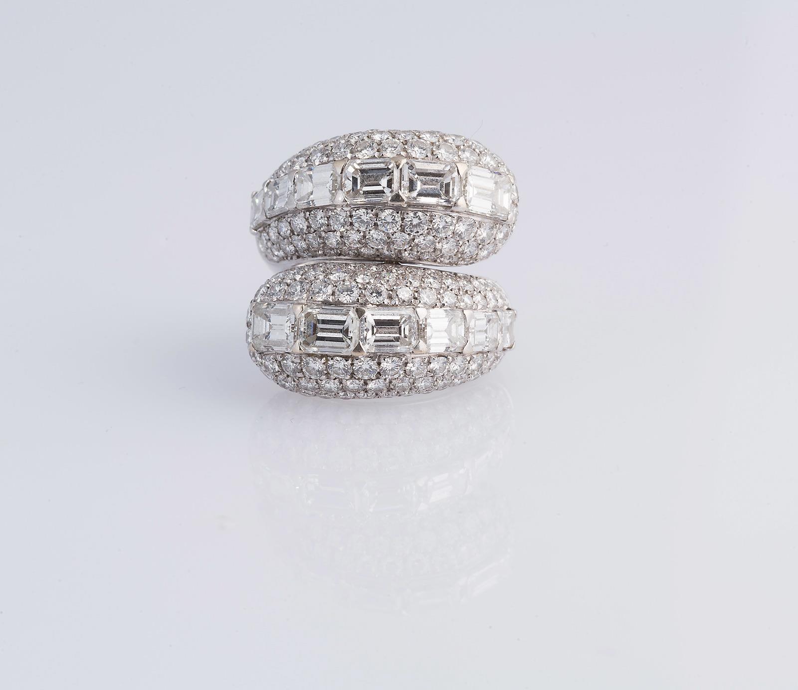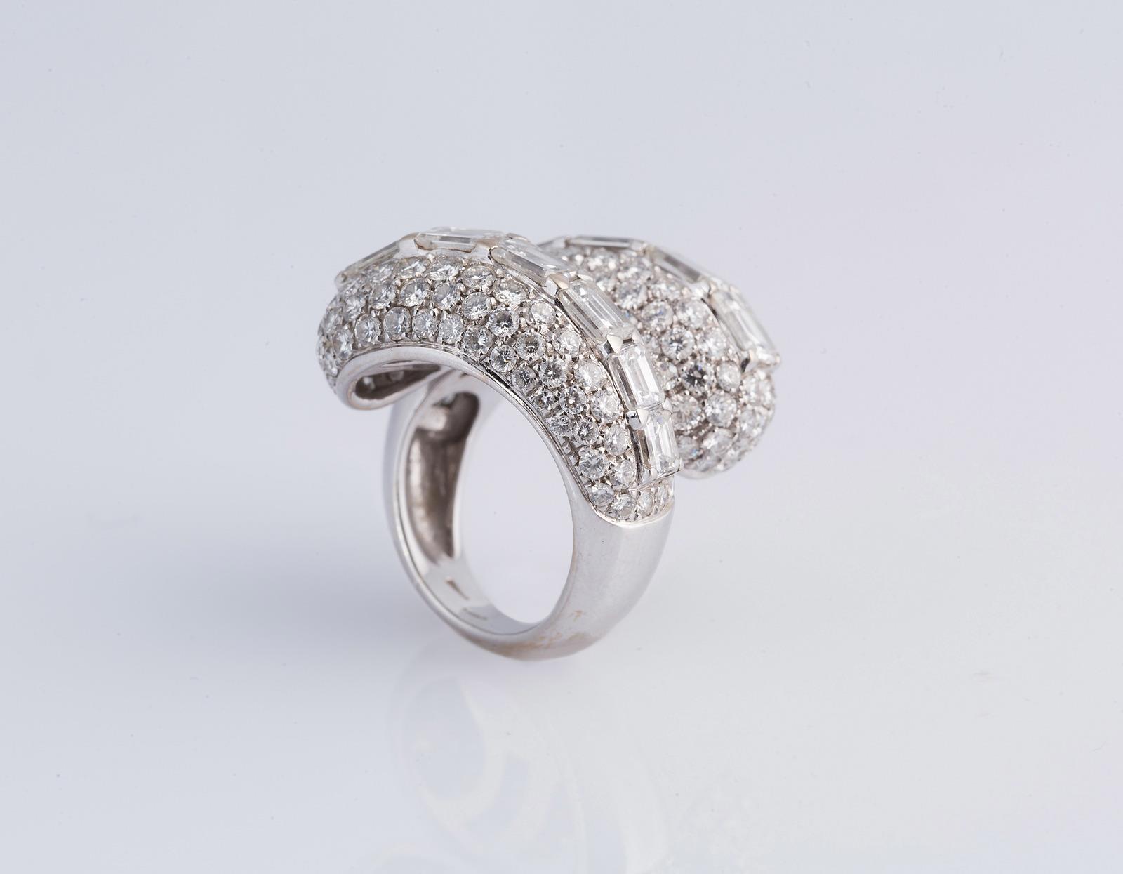 Anello in oro bianco gr 16.90 con diamanti 9,80 carati circa. . Cm 2,50 x 3,00 x 3,00. Peso 14,80 grammi.