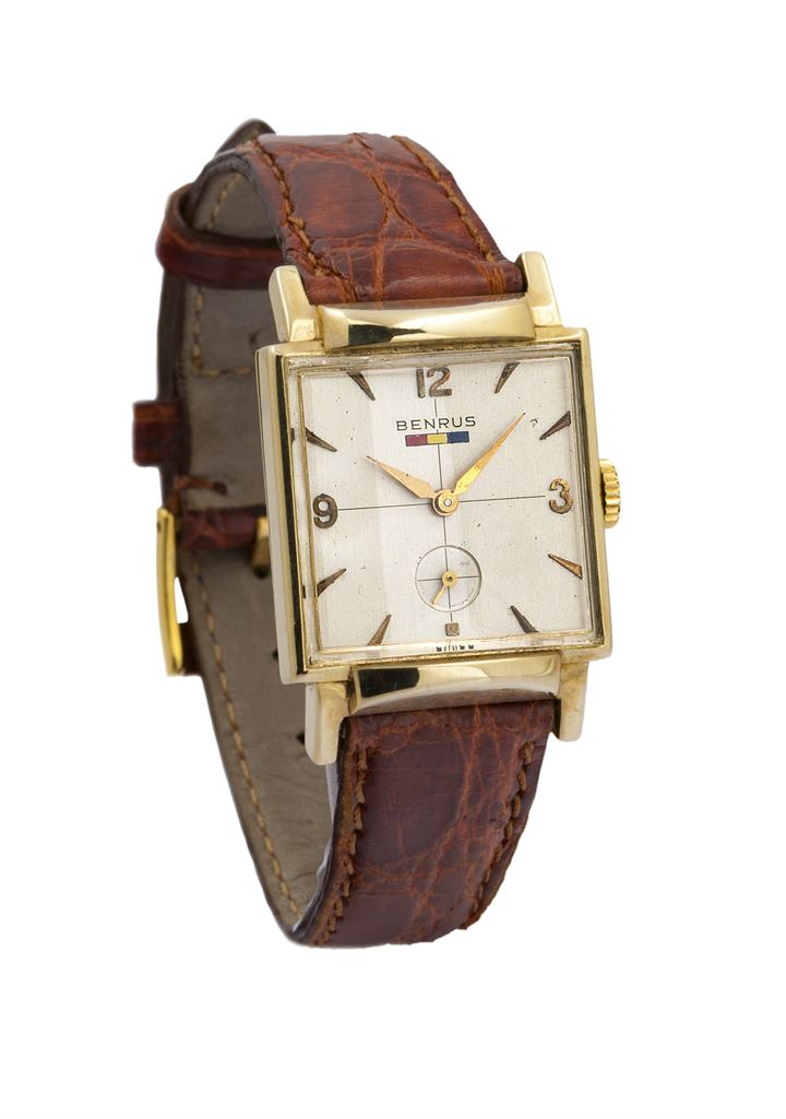 BENRUS Solo tempo, anni '40 24x30 Cassa di forma in oro 14Kt con anse...