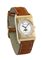 Cassa di forma, in oro, in due parti, con carrure superiore incisa. Quadrante serigrafato, datario periferico a sfera, indicazione fasi lunari a ore 6. Movimento al quarzo, calibro 620
