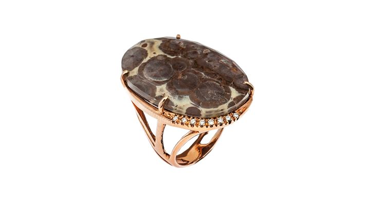 ANELLO Peso gr 10,0 Misura 13 in oro rosa 9 Kt con pietra dura taglio ovale...