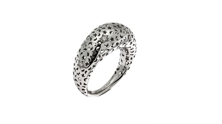 in oro bianco, sommità bombata e traforata, impreziosita da piccoli diamanti taglio brillante per totali ct 0,10 ca