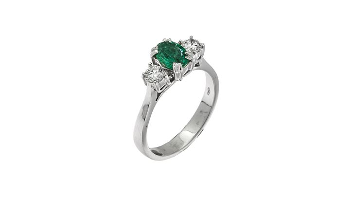 Lot 959 | ANELLO Peso gr 4,6 Misura 14 in oro bianco con smeraldo centrale taglio ovale...