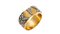 in oro giallo satinato, a fascia, con al centro lettera "F" in diamanti taglio 8/8 per totali ct 0, 35 ca