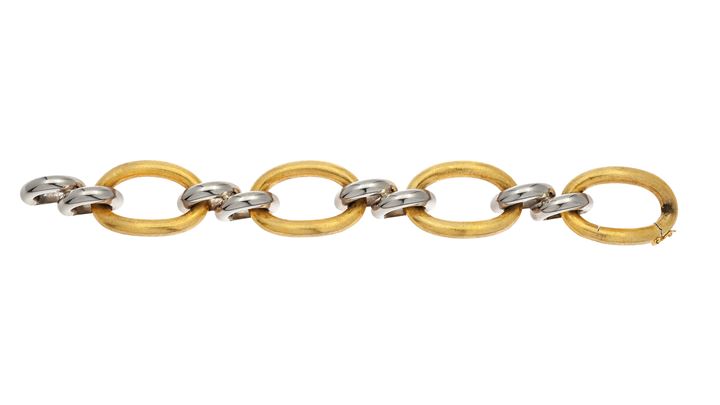 in oro giallo e bianco composto da ovali satinati