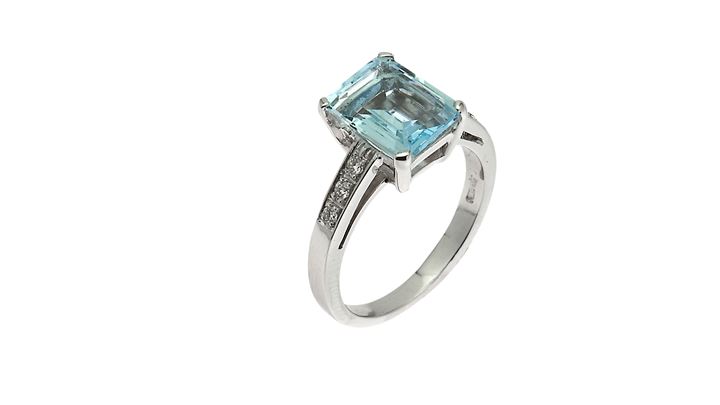 Lot 985 | ANELLO Peso gr 4,6 Misura 11 in oro bianco con acquamarina taglio...