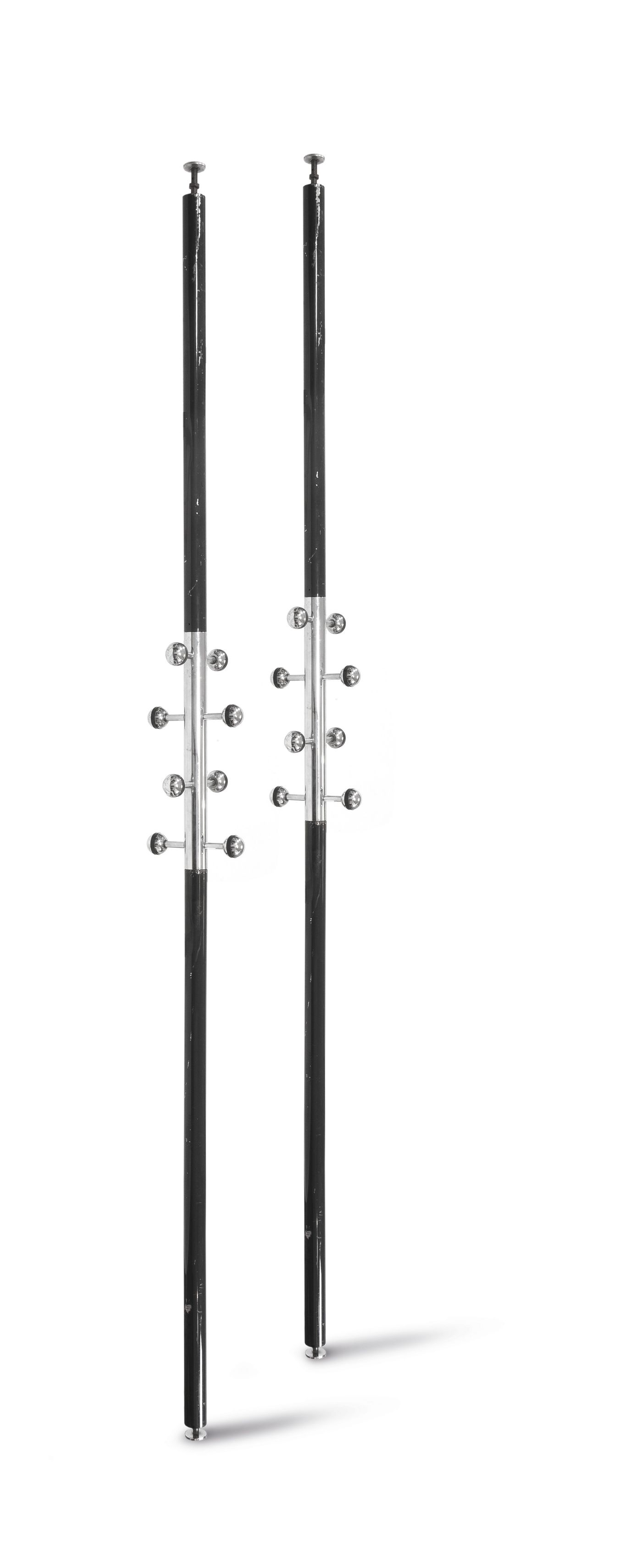 ATTACCAPANNI Coppia di attaccapanni girevoli a piantana. Tubi regolabili da fissare a parete e a soffitto, metallo laccato e cromato. h cm 280