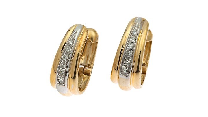 COPPIA DI ORECCHINI Peso gr 6,2 in oro giallo e bianco, a cerchio bombato con...