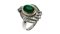 in platino con smeraldo centrale taglio cabochon di ct 5,0 ca, contornato da diamanti taglio trapezio per totali ct 2,70 ca