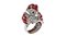 in oro bianco, particolare forma a gufo, con inserti geometrici in corallo rosso e diamantini taglio brillante per totali ct 0,35 ca