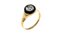 in oro giallo con sommità rotonda con pavè di diamanti taglio brillante per totali ct 0,25 (uno mancante) delimitata da un anello in onice