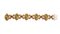Particolare bracciale in oro giallo, rosa e bianco lucido e sabbiato, composto da 5 placche rigide decorate con immagini di rose ed intervallate da elementi lavorati a motivo di corteccia e da distanziali con rubini cabochon. Piccole sfere in turchese (due mancanti)