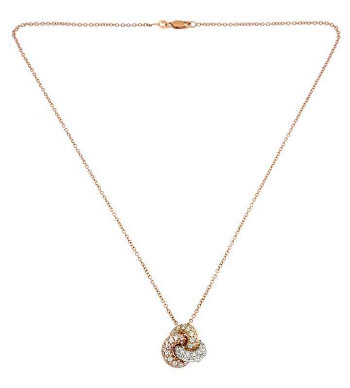 in oro rosa con ciondolo a forma di nodo nei tre colori dell'oro con diamanti taglio brillante per totali ct 1,10 ca