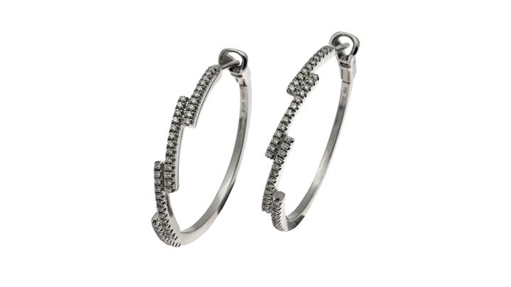 Coppia di orecchini in oro bianco, a cerchio, firmati "Damiani", parte anteriore segmentata con diamanti taglio brillante per complessivi ct 0,70 ca