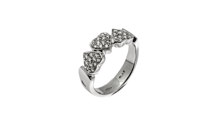in oro bianco sommità con tre cuori in diamanti taglio brillante per totali ct 0,35 ca