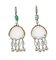 pendenti, in oro giallo, con gocce di cristallo di rocca sfaccettato, due smeraldi cabochon, frange con perline e piccoli diamanti taglio brillante