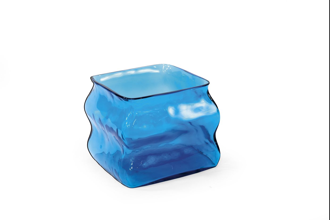 SALVIATI & C. Grande vaso soffiato in stampo a sponde ondulate firmato a punta di diamante Salviati Murano. 1965 circa. cm 19,5x24x24