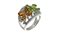 in oro bianco, a fascia, diamanti taglio brillante per totali ct 0,70 ca e due fiori composti da otto gocce con peridoti verdi e topazi citrini