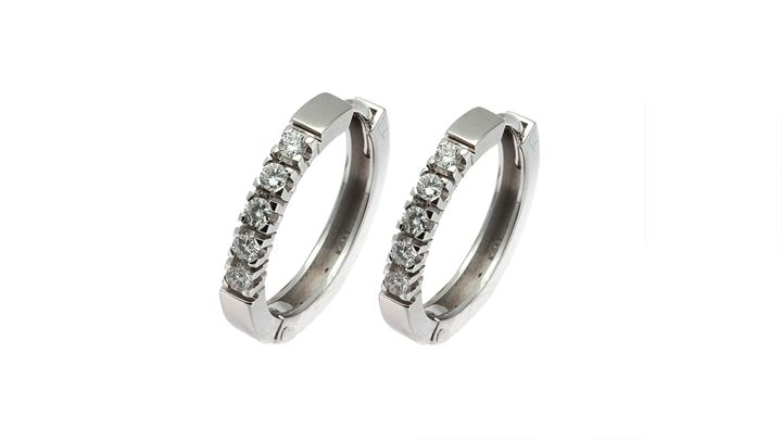 in oro bianco, a forma di cerchio, con parte anteriore in diamanti taglio brillante per totali ct 0,30 ca