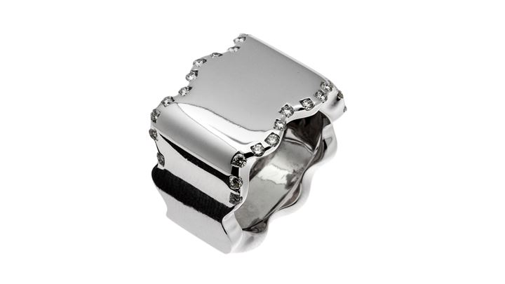 in oro bianco, a fascia, con bordi impreziositi da diamanti taglio brillante per totali ct 0,40 ca