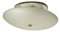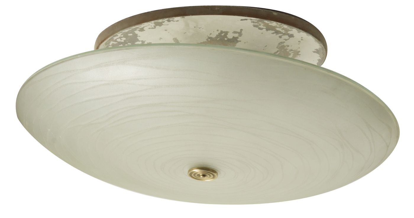FONTANA ARTE Lampadario a plafoniera Grande coppa in cristallo curvato e incisa all’ acido con motivo a spirale, disco superiore in vetro satinato, portalampade in alluminio laccato. Perno centrale con testa in ottone non originale. Prod. Fontana arte 1950 circa. diam cm 78