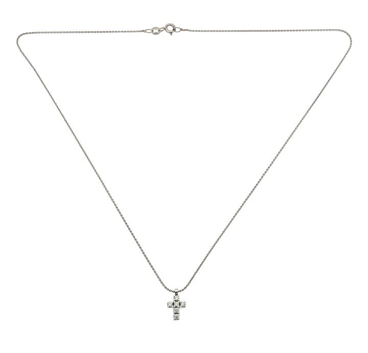 in oro bianco a forma di croce con diamanti taglio brillante per totali ct 0,12 ca