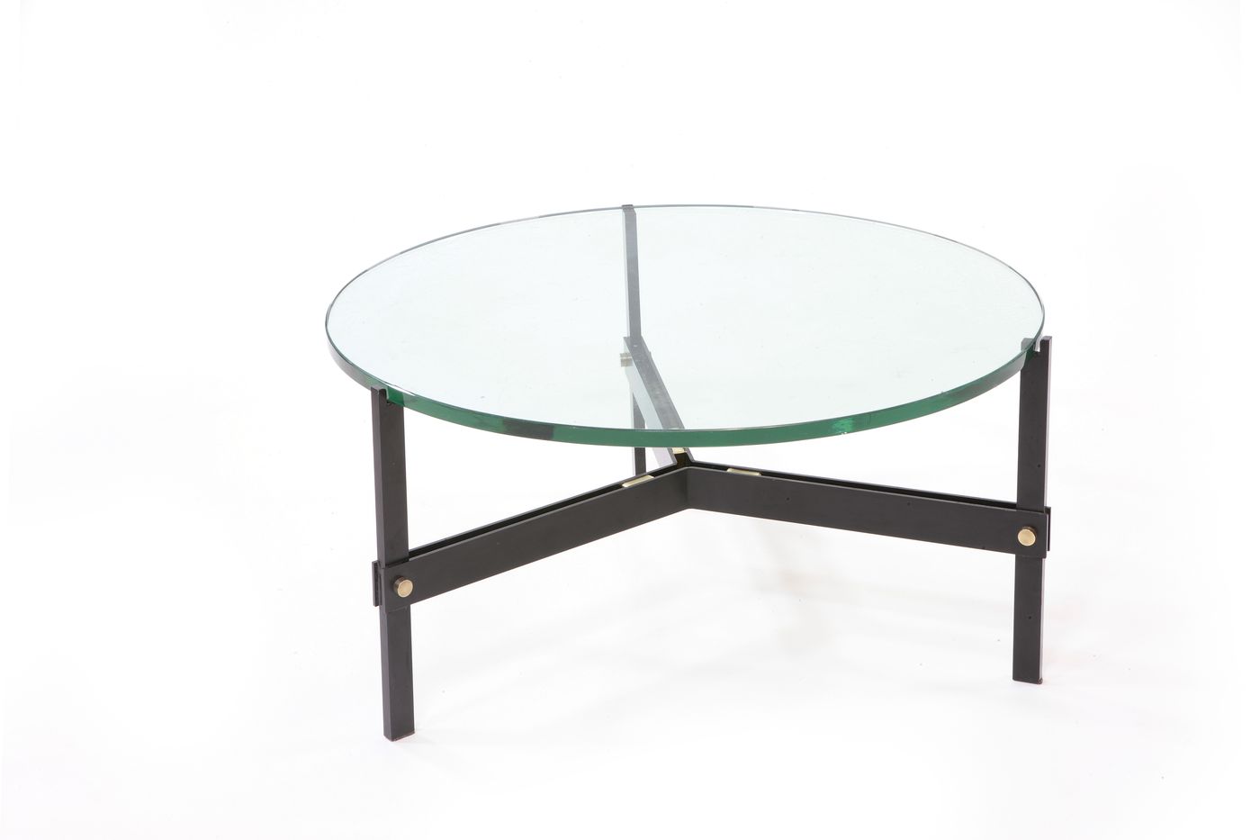 TAVOLINO Tavolino con piano in cristallo di forte spessore, base in metallo...