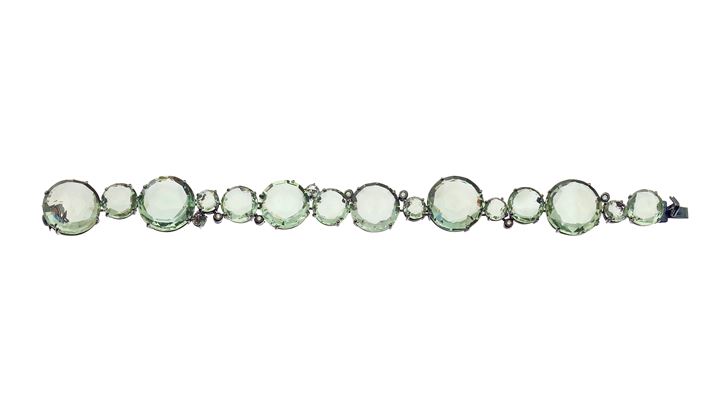 Bracciale in oro brunito, firmato "A&Furst", con quarzo verde briolette di forma rotonda di varie misure e piccoli diamanti taglio brillante per totali
