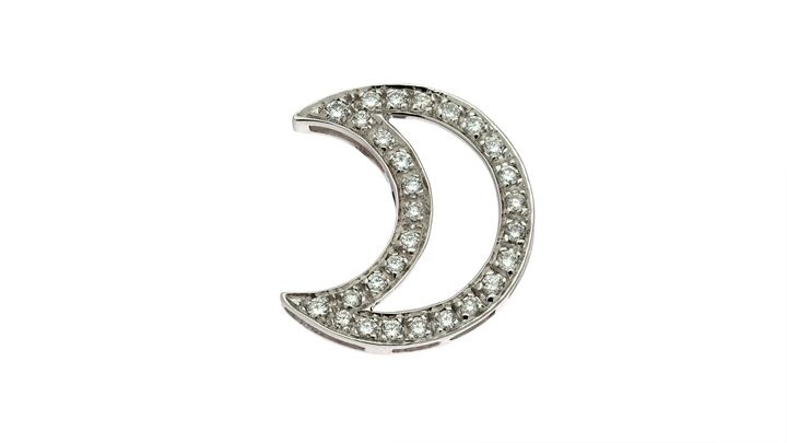 in oro bianco, a forma di mezzaluna, con diamanti taglio brillante per totali ct 0,30 ca