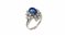 in oro bianco con zaffiro centrale taglio ovale di ct 1,94, contornato da diamanti taglio brillante per totali ct 0,90 ca