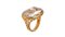 Anello in oro giallo sabbiato e traforato, firmato "Pomellato", modello "Bahia",con al centro grande cristallo di rocca sfaccettato. Modello fuori produzione, corredato di astuccio e scatola